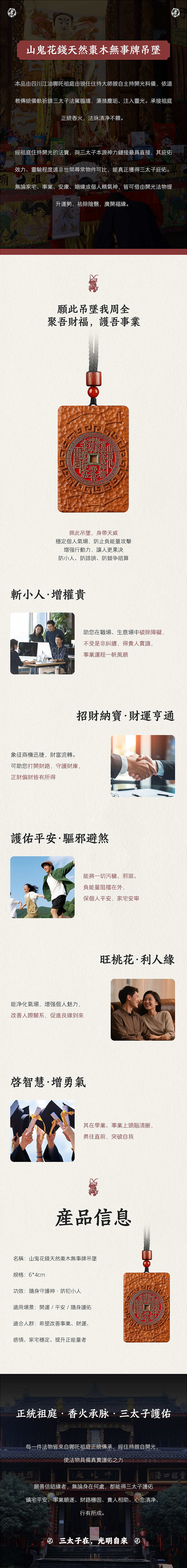 山鬼花錢天然棗木無事牌吊墜平安牌